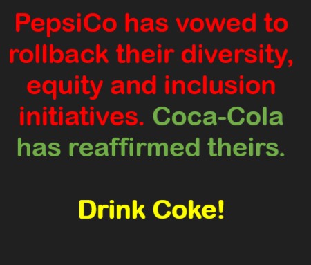Today, I posted on Facebook about Coke v. Pepsi in the DEI war: PepsiCo has vowed to rollback their diversity, equity and inclusion initiatives. Coca-Cola has reaffirmed theirs. Drink Coke!